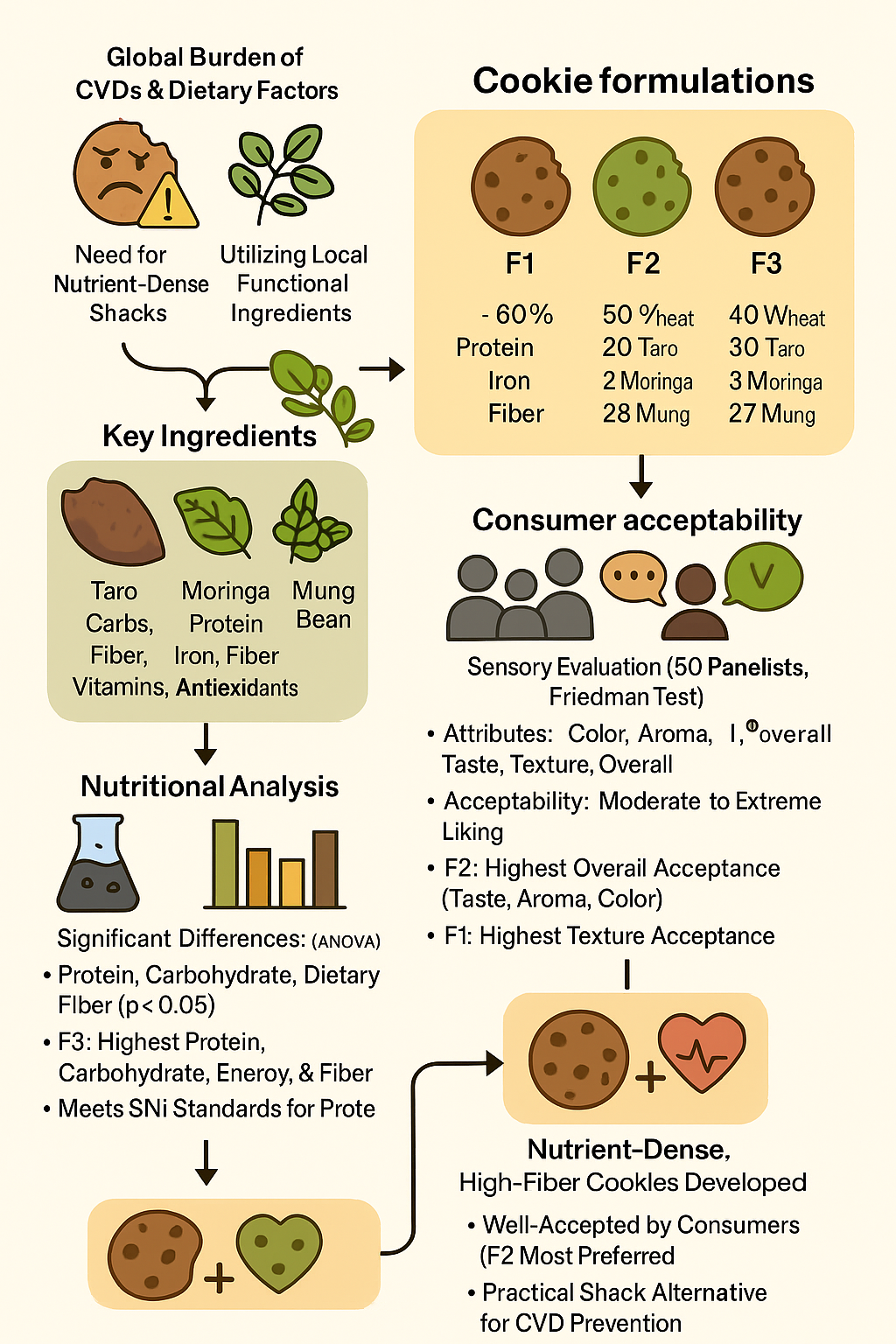 Nutritional characteristics and Consumer Acceptability of Cookies Enriched with Taro Flour (Colocasia esculenta), Moringa Leaf Flour (Moringa oleifera), and Mung Bean Flour (Phaseolus aureus)